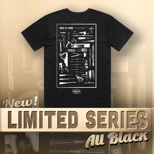[LIMITED TEE] BLACK x MADE BY HAND // Woodworking Tools Flatlay